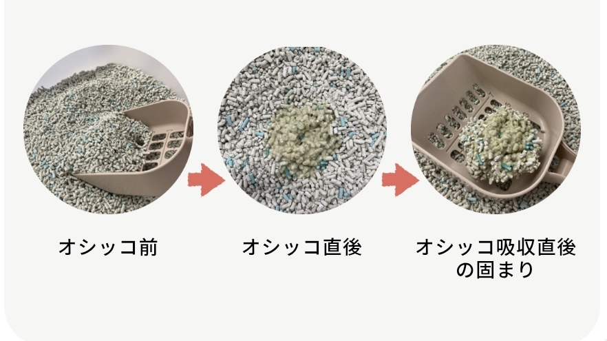 ✅ 固まりやすい → スコップで取りやすく、掃除がラク!💩も砂がしっかり吸着しているのでスコップの汚れが少ない。