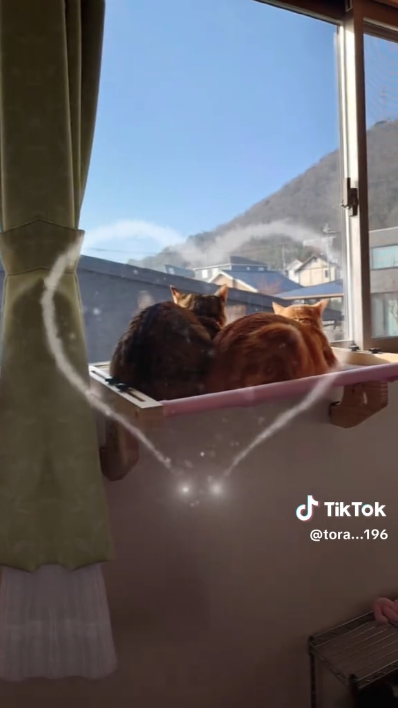 今回、TikTokユーザー はなはな(@tora…196) さん宅の ななちゃん(茶トラ白)&すずちゃん(三毛) 姉妹が使っている 「DICOCO取り付けハンモック」 をご紹介!