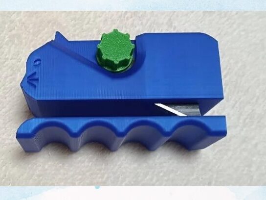 🛠 ノブ(ロック)🟢のツマミで刃の出量を調整・固定。作業外は「最小+ロック」。