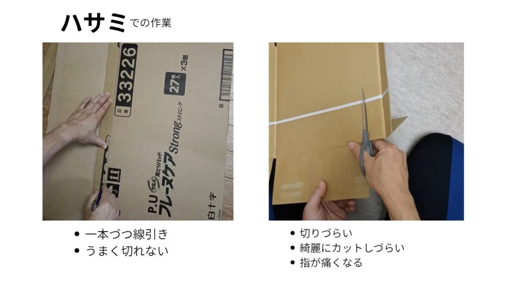 ダンボールカッター:線引き不要・時短・仕上がり安定