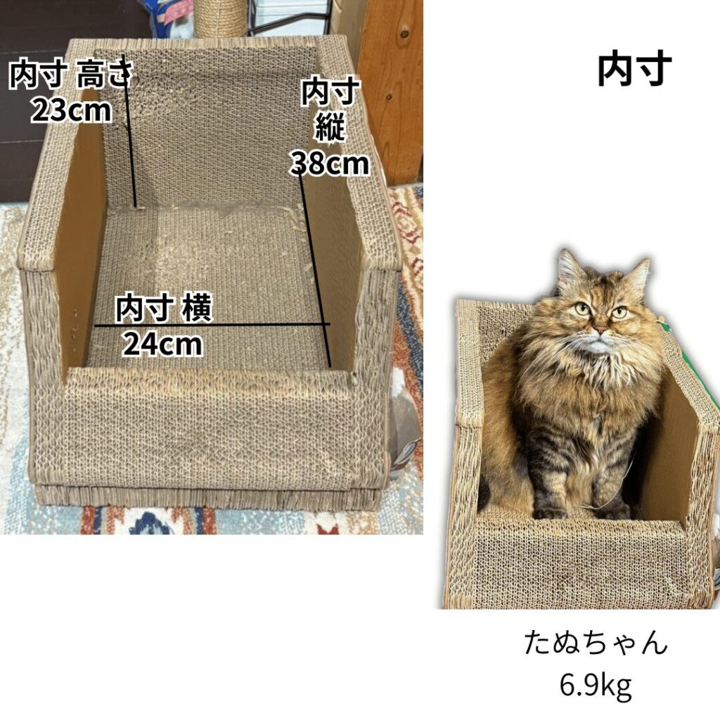 「大切な家族である愛猫ちゃんが使用するものは、安全が一番ですよね。その上で可愛いデザインであれば更に嬉しいですよね。高齢猫ちゃんや、大きめ猫ちゃん、スリムな猫ちゃん幅広く使えるオススメな爪研ぎです。私は、買ってよかったと思っております。爪研ぎを購入もしくは買い換えを検討中の方がいましたら、是非ご覧頂けたらと思います。大切な愛猫ちゃんの安全を考慮して一緒に住み良い暮らしをしていきたいですね。」(原文ママ)