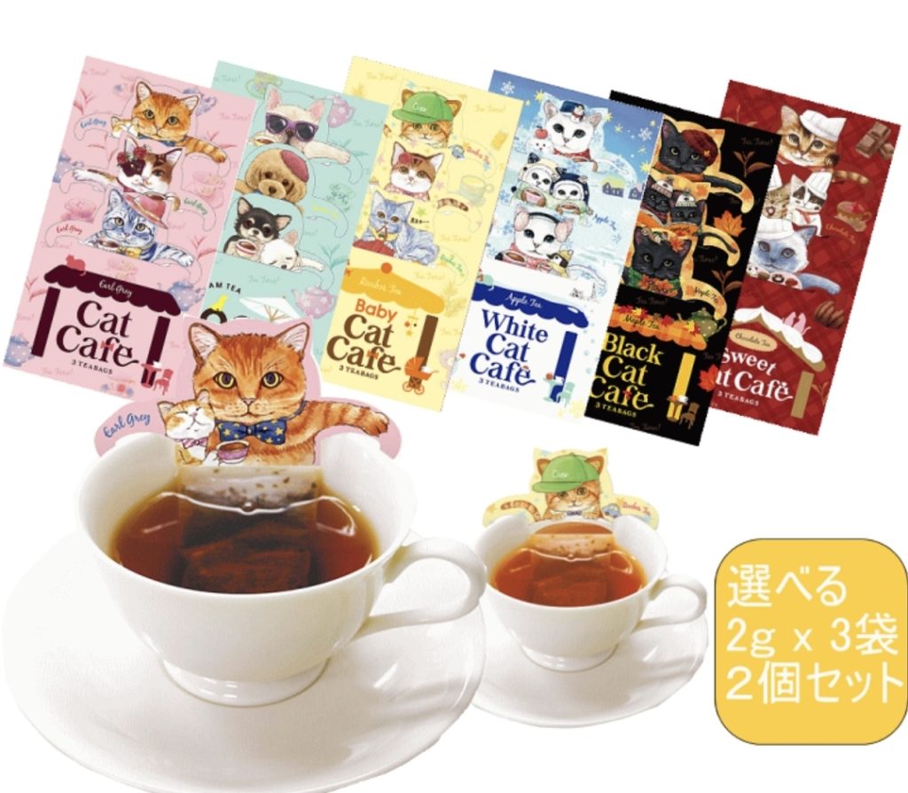 猫のお菓子と一緒に猫まみれ😽で楽しんで欲しい紅茶。猫好きさんはもちろん猫のコミカルな姿はちょっとしたプレゼントにもなります。貰った人も楽しめますね。