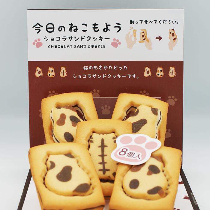 今日のねこもよう ショコラサンドクッキー8個入 かわいい 猫クッキー 信州長野のお土産 (3種類×1個)型取りしながら楽しく頂けます。私も購入しました。個包装なのも良いですね。